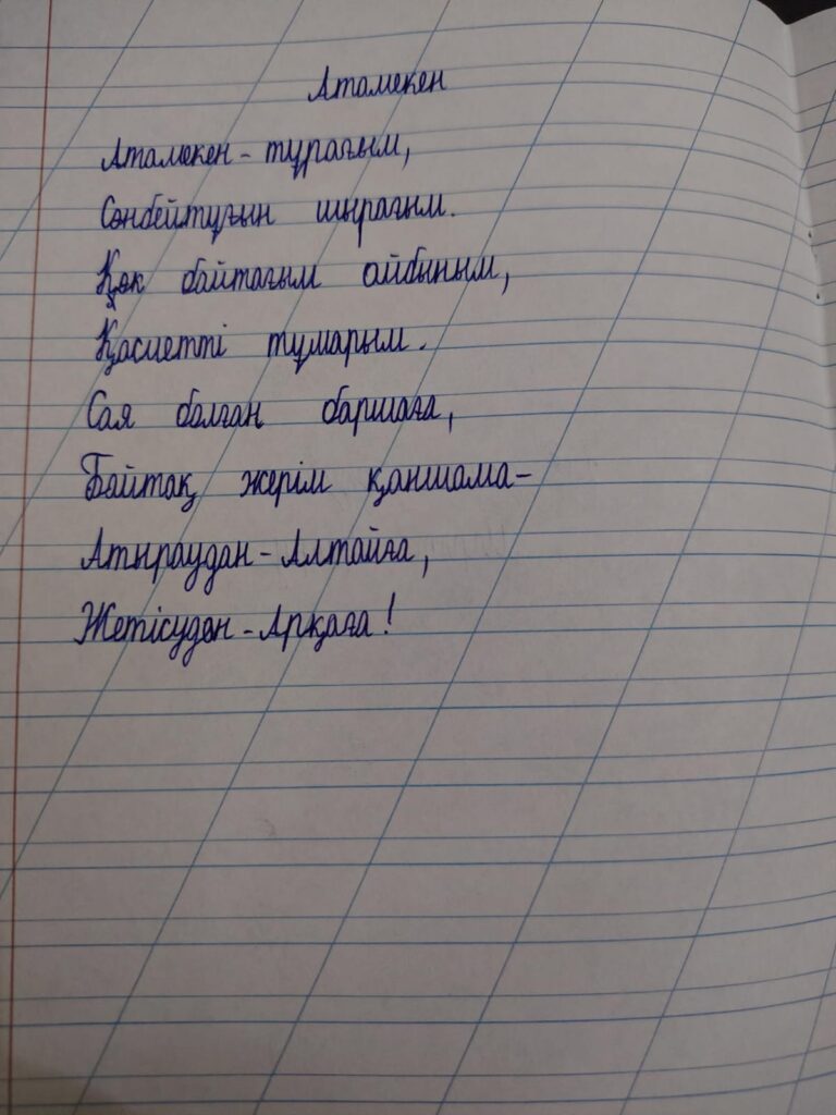 Марат Айару Альбертқызы. Көркем жазу Түркістан облысы Ордабасы ауданы Қайнар ауылы "Дулат" негізі орта мектебі 2 ә сынып оқушысы Марат Айару Альбертқызы Жетекшісі: Бекасил Диана Алишакирқызы FacebookTwitterPinterestWhatsApp Басқа қатысушылар 2-СЫНЫП ОҚУШЫЛАРЫ АРАСЫНДАҒЫ «КӨРКЕМ ЖАЗУ» БАЙҚАУЫ Бауыржан Асыл Нуркенұлы. Көркем жазу 0 2-СЫНЫП ОҚУШЫЛАРЫ АРАСЫНДАҒЫ «КӨРКЕМ ЖАЗУ» БАЙҚАУЫ Мәділлә Айым Сабыржанқызы. Көркем жазу 0 2-СЫНЫП ОҚУШЫЛАРЫ АРАСЫНДАҒЫ «КӨРКЕМ ЖАЗУ» БАЙҚАУЫ Қуандық Ақжүрек Сержанұлы. Көркем жазу 0 2-СЫНЫП ОҚУШЫЛАРЫ АРАСЫНДАҒЫ «КӨРКЕМ ЖАЗУ» БАЙҚАУЫ Нұрғали Мейірім Азатқызы. Көркем жазу 0 2-СЫНЫП ОҚУШЫЛАРЫ АРАСЫНДАҒЫ «КӨРКЕМ ЖАЗУ» БАЙҚАУЫ Байділә Мерей Маратиллақызы. Көркем жазу 0