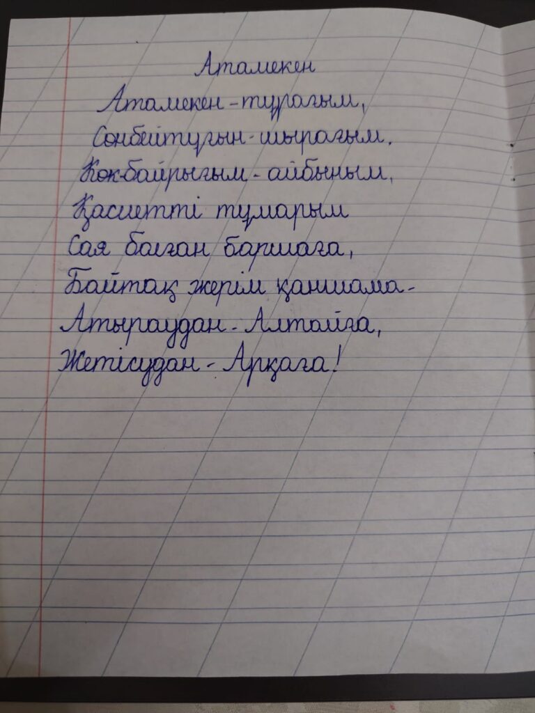 Нұрғали Мейірім Азатқызы. Көркем жазу Түркістан облысы Ордабасы ауданы Қайнар ауылы "Дулат" негізі орта мектебі 2 ә сынып оқушысы Нұрғали Мейірім Азатқызы Жетекшісі: Бекасил Диана Алишакирқызы FacebookTwitterPinterestWhatsApp Басқа қатысушылар 2-СЫНЫП ОҚУШЫЛАРЫ АРАСЫНДАҒЫ «КӨРКЕМ ЖАЗУ» БАЙҚАУЫ Бауыржан Асыл Нуркенұлы. Көркем жазу 0 2-СЫНЫП ОҚУШЫЛАРЫ АРАСЫНДАҒЫ «КӨРКЕМ ЖАЗУ» БАЙҚАУЫ Марат Айару Альбертқызы. Көркем жазу 0 2-СЫНЫП ОҚУШЫЛАРЫ АРАСЫНДАҒЫ «КӨРКЕМ ЖАЗУ» БАЙҚАУЫ Мәділлә Айым Сабыржанқызы. Көркем жазу 0 2-СЫНЫП ОҚУШЫЛАРЫ АРАСЫНДАҒЫ «КӨРКЕМ ЖАЗУ» БАЙҚАУЫ Қуандық Ақжүрек Сержанұлы. Көркем жазу 0 2-СЫНЫП ОҚУШЫЛАРЫ АРАСЫНДАҒЫ «КӨРКЕМ ЖАЗУ» БАЙҚАУЫ Байділә Мерей Маратиллақызы. Көркем жазу 0