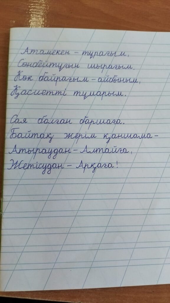 Әсілхан Алиар Әсетұлы. Көркем жазу Түркістан облысы Созақ ауданы Иманов атындағы шағын жинақты жалпы білім беретін мектеп FacebookTwitterPinterestWhatsApp Басқа қатысушылар «ҮЗДІК МАҚАЛА» БАЙҚАУЫ Ажибекова Гулшат Айтбаевна 0 2-СЫНЫП ОҚУШЫЛАРЫ АРАСЫНДАҒЫ «КӨРКЕМ ЖАЗУ» БАЙҚАУЫ Серікбай Ерасыл Біржанұлы. Көркем жазу 0 2-СЫНЫП ОҚУШЫЛАРЫ АРАСЫНДАҒЫ «КӨРКЕМ ЖАЗУ» БАЙҚАУЫ Орынтай Айару. Көркем жазу 0 «ҮЗДІК МАҚАЛА» БАЙҚАУЫ Тойлыбай Назым Сайфудинқызы 0 2-СЫНЫП ОҚУШЫЛАРЫ АРАСЫНДАҒЫ «КӨРКЕМ ЖАЗУ» БАЙҚАУЫ Нұркен Дінмұхамед. Көркем жазу 0
