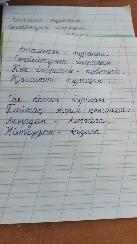 Орынтай Айару. Көркем жазу Түркістан облысы Созақ ауданы Иманов атындағы шағын жинақты жалпы білім беретін мектеп FacebookTwitterPinterestWhatsApp Басқа қатысушылар «ҮЗДІК МАҚАЛА» БАЙҚАУЫ Ажибекова Гулшат Айтбаевна 0 2-СЫНЫП ОҚУШЫЛАРЫ АРАСЫНДАҒЫ «КӨРКЕМ ЖАЗУ» БАЙҚАУЫ Серікбай Ерасыл Біржанұлы. Көркем жазу 0 2-СЫНЫП ОҚУШЫЛАРЫ АРАСЫНДАҒЫ «КӨРКЕМ ЖАЗУ» БАЙҚАУЫ Әсілхан Алиар Әсетұлы. Көркем жазу 0 «ҮЗДІК МАҚАЛА» БАЙҚАУЫ Тойлыбай Назым Сайфудинқызы 0 2-СЫНЫП ОҚУШЫЛАРЫ АРАСЫНДАҒЫ «КӨРКЕМ ЖАЗУ» БАЙҚАУЫ Нұркен Дінмұхамед. Көркем жазу 0