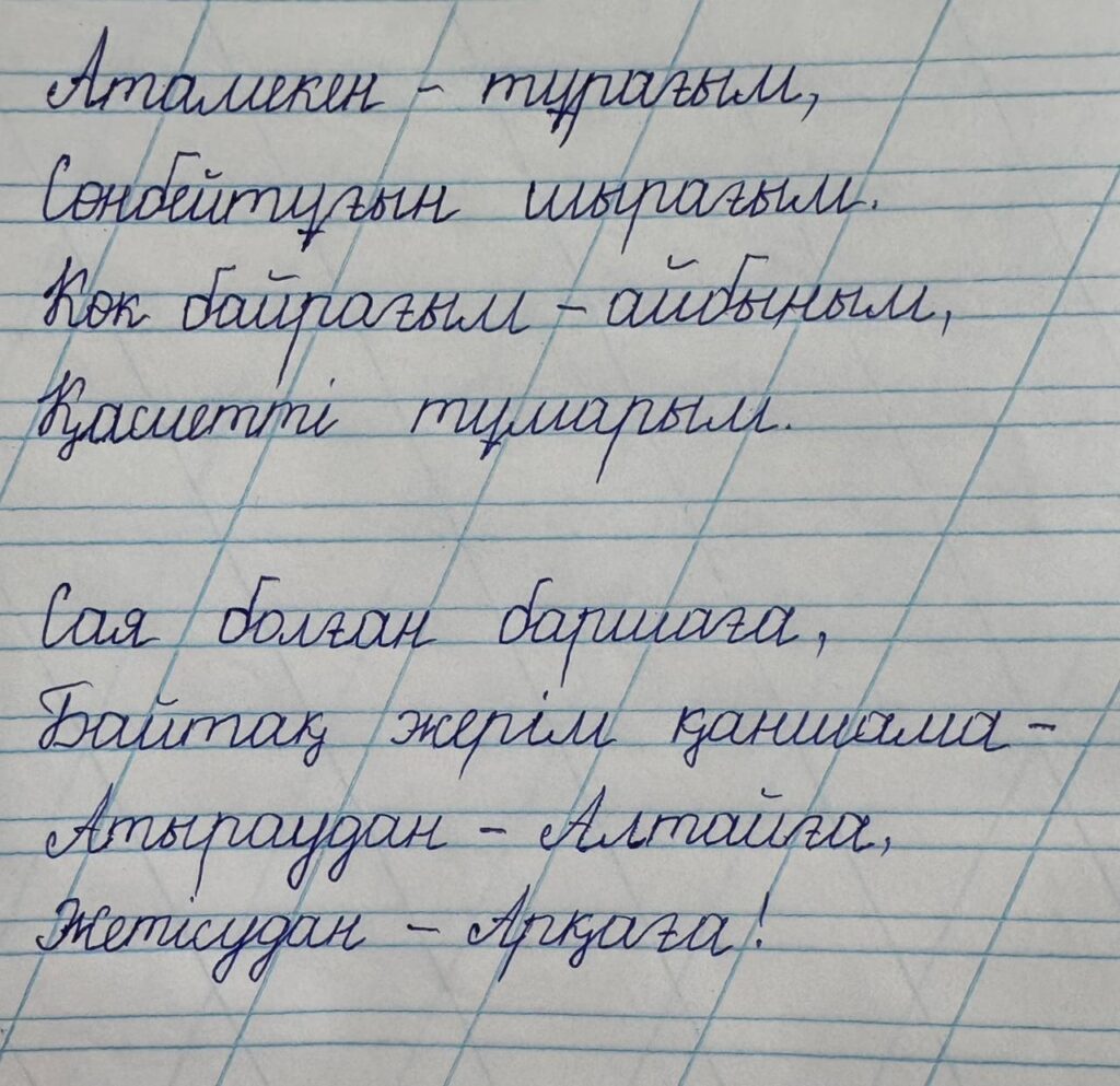 Бақытжан Ибрагим. Көркем жазу “TAYMAS-I” зияткерлік меткебінің 2 ”а” сынып оқушысы Сынып жетекшісі : Ералхан Несібелі Ахмедқызы FacebookTwitterPinterestWhatsApp Басқа қатысушылар 2-СЫНЫП ОҚУШЫЛАРЫ АРАСЫНДАҒЫ «КӨРКЕМ ЖАЗУ» БАЙҚАУЫ ЕРКІН ЖАРҚЫРА ТҰРЛАНҚЫЗЫ. Көркем жазу 0 2-СЫНЫП ОҚУШЫЛАРЫ АРАСЫНДАҒЫ «КӨРКЕМ ЖАЗУ» БАЙҚАУЫ Тұрсынхан Гауhартас Нұржанқызы. Көркем жазу 0 2-СЫНЫП ОҚУШЫЛАРЫ АРАСЫНДАҒЫ «КӨРКЕМ ЖАЗУ» БАЙҚАУЫ Жауымбай Мерейлім. Көркем жазу 0 2-СЫНЫП ОҚУШЫЛАРЫ АРАСЫНДАҒЫ «КӨРКЕМ ЖАЗУ» БАЙҚАУЫ Дүйсенғали Қарақат . Көркем жазу 0 2-СЫНЫП ОҚУШЫЛАРЫ АРАСЫНДАҒЫ «КӨРКЕМ ЖАЗУ» БАЙҚАУЫ Айтғали Айсұлтан. Көркем жазу 0
