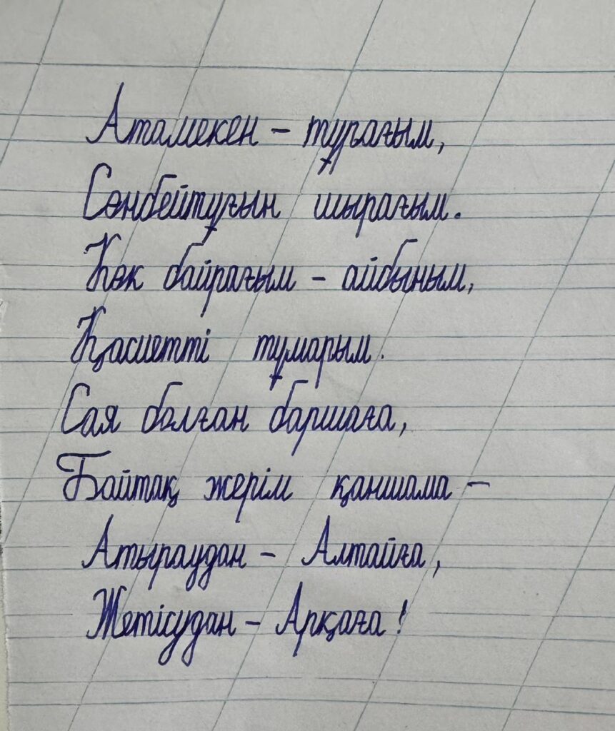 Мұратқали Жақсылық. Көркем жазу “TAYMAS-I” зияткерлік меткебінің 2 ”а” сынып оқушысы Сынып жетекшісі : Ералхан Несібелі Ахмедқызы FacebookTwitterPinterestWhatsApp Басқа қатысушылар 2-СЫНЫП ОҚУШЫЛАРЫ АРАСЫНДАҒЫ «КӨРКЕМ ЖАЗУ» БАЙҚАУЫ ЕРКІН ЖАРҚЫРА ТҰРЛАНҚЫЗЫ. Көркем жазу 0 2-СЫНЫП ОҚУШЫЛАРЫ АРАСЫНДАҒЫ «КӨРКЕМ ЖАЗУ» БАЙҚАУЫ Тұрсынхан Гауhартас Нұржанқызы. Көркем жазу 0 2-СЫНЫП ОҚУШЫЛАРЫ АРАСЫНДАҒЫ «КӨРКЕМ ЖАЗУ» БАЙҚАУЫ Жауымбай Мерейлім. Көркем жазу 0 2-СЫНЫП ОҚУШЫЛАРЫ АРАСЫНДАҒЫ «КӨРКЕМ ЖАЗУ» БАЙҚАУЫ Дүйсенғали Қарақат . Көркем жазу 0 2-СЫНЫП ОҚУШЫЛАРЫ АРАСЫНДАҒЫ «КӨРКЕМ ЖАЗУ» БАЙҚАУЫ Айтғали Айсұлтан. Көркем жазу 0