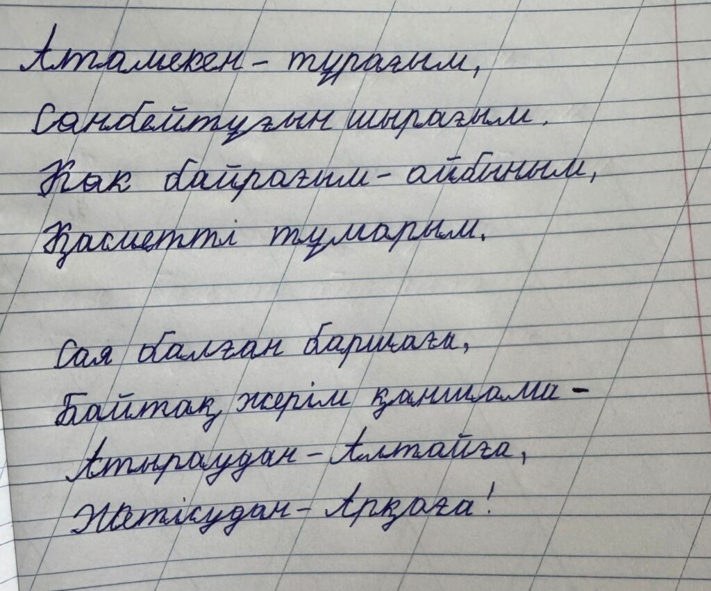 Сәрсен Омар. Көркем жазу “TAYMAS-I” зияткерлік меткебінің 2 ”а” сынып оқушысы Сынып жетекшісі : Ералхан Несібелі Ахмедқызы FacebookTwitterPinterestWhatsApp Басқа қатысушылар 2-СЫНЫП ОҚУШЫЛАРЫ АРАСЫНДАҒЫ «КӨРКЕМ ЖАЗУ» БАЙҚАУЫ ЕРКІН ЖАРҚЫРА ТҰРЛАНҚЫЗЫ. Көркем жазу 0 2-СЫНЫП ОҚУШЫЛАРЫ АРАСЫНДАҒЫ «КӨРКЕМ ЖАЗУ» БАЙҚАУЫ Тұрсынхан Гауhартас Нұржанқызы. Көркем жазу 0 2-СЫНЫП ОҚУШЫЛАРЫ АРАСЫНДАҒЫ «КӨРКЕМ ЖАЗУ» БАЙҚАУЫ Жауымбай Мерейлім. Көркем жазу 0 2-СЫНЫП ОҚУШЫЛАРЫ АРАСЫНДАҒЫ «КӨРКЕМ ЖАЗУ» БАЙҚАУЫ Дүйсенғали Қарақат . Көркем жазу 0 2-СЫНЫП ОҚУШЫЛАРЫ АРАСЫНДАҒЫ «КӨРКЕМ ЖАЗУ» БАЙҚАУЫ Айтғали Айсұлтан. Көркем жазу 0