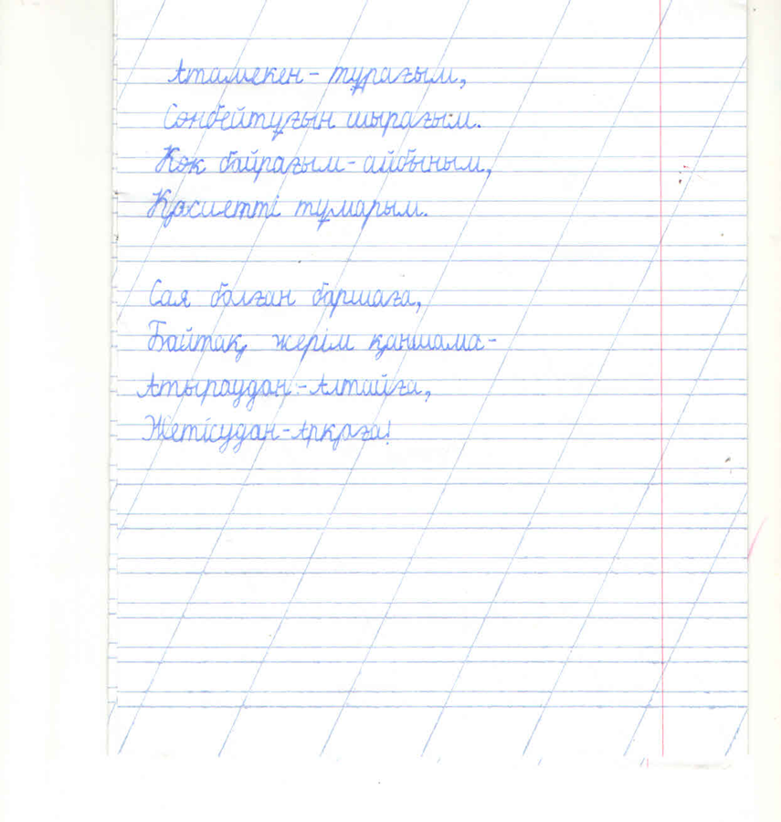 ЕРКІН ЖАРҚЫРА ТҰРЛАНҚЫЗЫ. Көркем жазу FacebookTwitterPinterestWhatsApp Басқа қатысушылар 2-СЫНЫП ОҚУШЫЛАРЫ АРАСЫНДАҒЫ «КӨРКЕМ ЖАЗУ» БАЙҚАУЫ Тұрсынхан Гауhартас Нұржанқызы. Көркем жазу 0 2-СЫНЫП ОҚУШЫЛАРЫ АРАСЫНДАҒЫ «КӨРКЕМ ЖАЗУ» БАЙҚАУЫ Жауымбай Мерейлім. Көркем жазу 0 2-СЫНЫП ОҚУШЫЛАРЫ АРАСЫНДАҒЫ «КӨРКЕМ ЖАЗУ» БАЙҚАУЫ Дүйсенғали Қарақат . Көркем жазу 0 2-СЫНЫП ОҚУШЫЛАРЫ АРАСЫНДАҒЫ «КӨРКЕМ ЖАЗУ» БАЙҚАУЫ Айтғали Айсұлтан. Көркем жазу 0 2-СЫНЫП ОҚУШЫЛАРЫ АРАСЫНДАҒЫ «КӨРКЕМ ЖАЗУ» БАЙҚАУЫ Жанғожаұлы Ислам. Көркем жазу 0