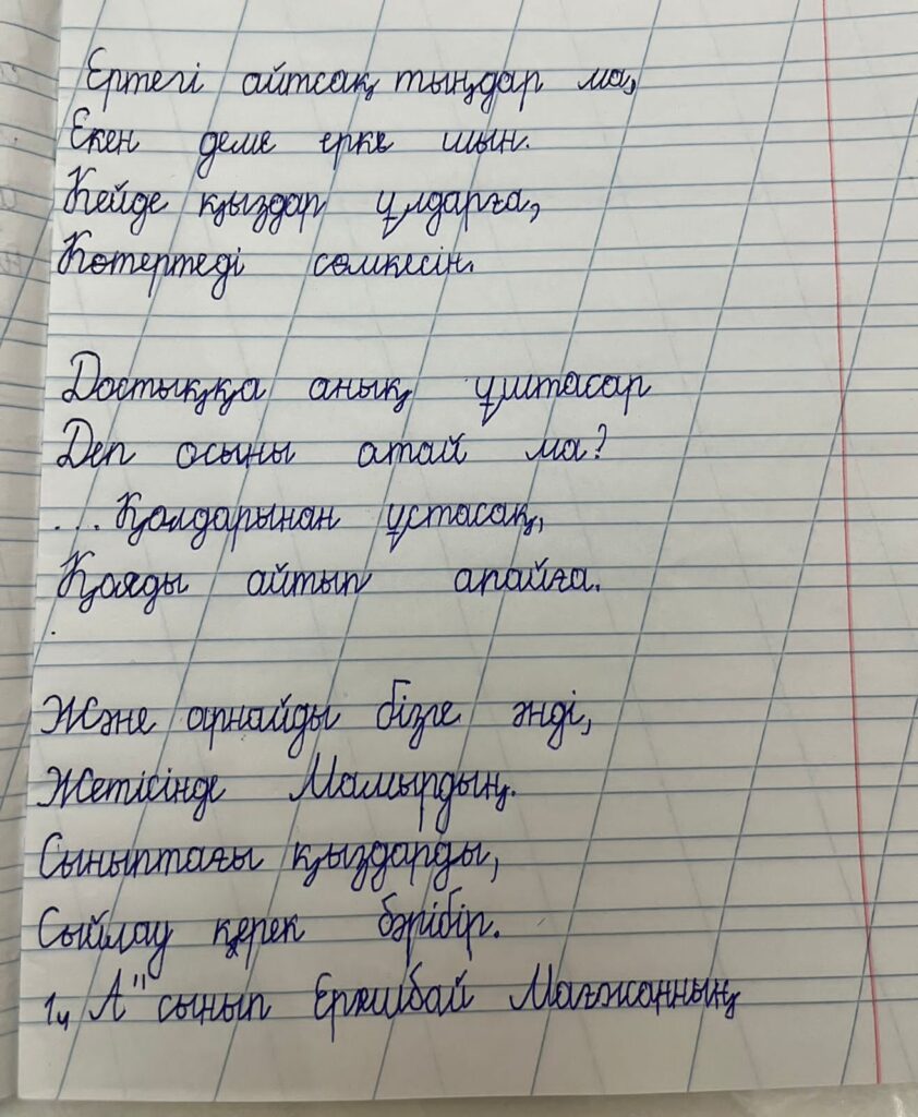 Ергешбай Мағжан. Көркем жазу FacebookTwitterPinterestWhatsApp Басқа қатысушылар «ҮЗДІК МАҚАЛА» БАЙҚАУЫ Ибраева Ирина Анатольевна 0 «ҮЗДІК МАҚАЛА» БАЙҚАУЫ Исатова Светлана Кибашовна 0 «ҮЗДІК МАҚАЛА» БАЙҚАУЫ Наукенова Айнұр Нурланқызы 0 Бастауыш сынып оқушылары арасында Республикалық «көркем жазу» байқауы Мухтар Мариям. Көркем жазу 0 Бастауыш сынып оқушылары арасында Республикалық «көркем жазу» байқауы Смадияр Амирхан Саматұлы. Көркем жазу 0