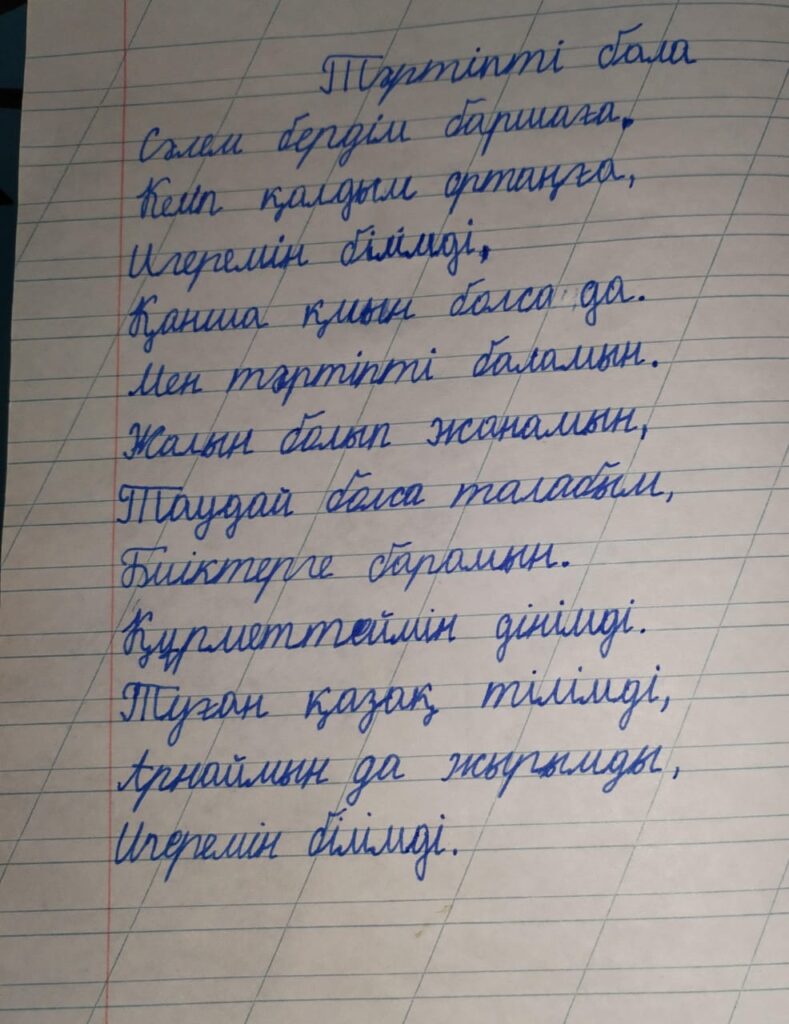 Алпысбай Еркем Мухтарқызы. Көркем жазу 1 " А" сынып оқушысы Алпысбай Еркем Мухтарқызы Сынып жетекшісі: Исаева Ұлжан FacebookTwitterPinterestWhatsApp Басқа қатысушылар МАД тобы мен 1-сынып оқушылары арасында Республикалық «көркем жазу» байқауы Караматова Аниса Ибраимовна. Көркем жазу 0 МАД тобы мен 1-сынып оқушылары арасында Республикалық «көркем жазу» байқауы Аманкелді Жәннат Айдосқызы. Көркем жазу 0 МАД тобы мен 1-сынып оқушылары арасында Республикалық «көркем жазу» байқауы Кулиева Севара Ихтиёровна. Көркем жазу 0 МАД тобы мен 1-сынып оқушылары арасында Республикалық «көркем жазу» байқауы Бомуратова Норхол Бековна. Көркем жазу 0 МАД тобы мен 1-сынып оқушылары арасында Республикалық «көркем жазу» байқауы Хабибова Сафия Дильмурадовна. Көркем жазу 0