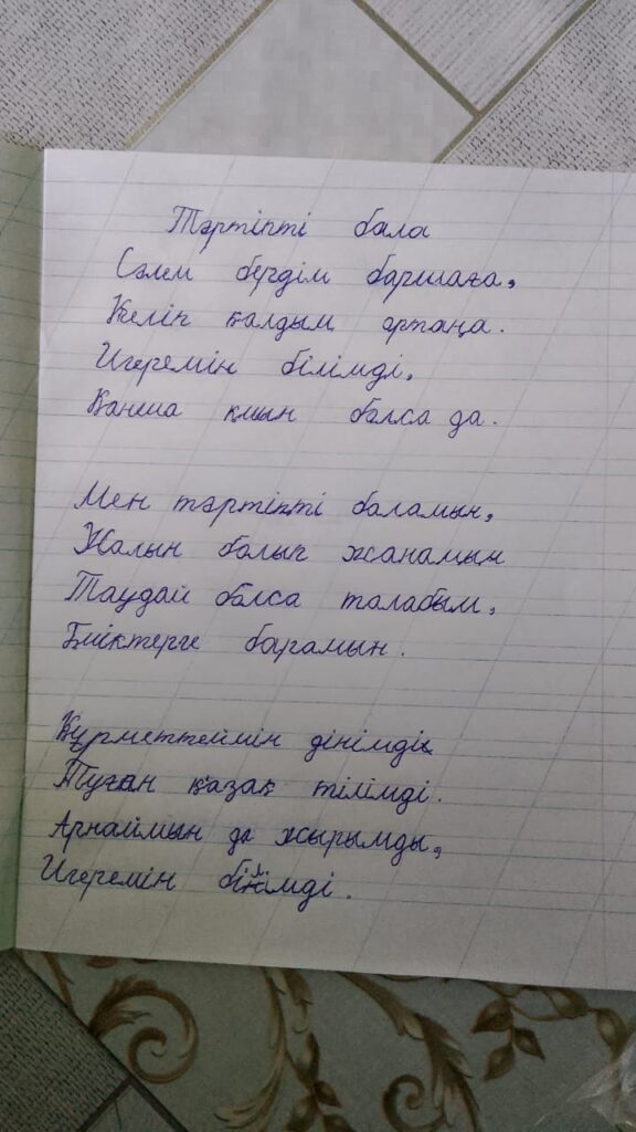 Караматова Аниса Ибраимовна. Көркем жазу Сынып жетекшісі: Привалиева Айнур Кыдыровна FacebookTwitterPinterestWhatsApp Басқа қатысушылар МАД тобы мен 1-сынып оқушылары арасында Республикалық «көркем жазу» байқауы Аманкелді Жәннат Айдосқызы. Көркем жазу 0 МАД тобы мен 1-сынып оқушылары арасында Республикалық «көркем жазу» байқауы Кулиева Севара Ихтиёровна. Көркем жазу 0 МАД тобы мен 1-сынып оқушылары арасында Республикалық «көркем жазу» байқауы Алпысбай Еркем Мухтарқызы. Көркем жазу 0 МАД тобы мен 1-сынып оқушылары арасында Республикалық «көркем жазу» байқауы Бомуратова Норхол Бековна. Көркем жазу 0 МАД тобы мен 1-сынып оқушылары арасында Республикалық «көркем жазу» байқауы Хабибова Сафия Дильмурадовна. Көркем жазу 0