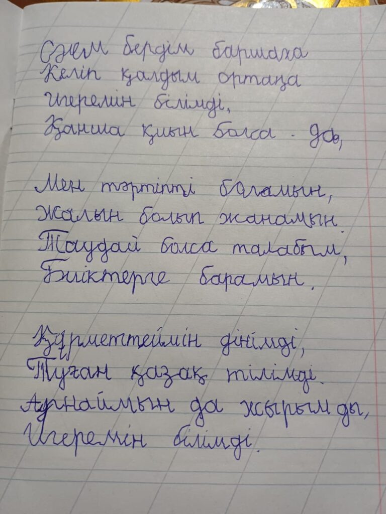 Барат Жібек. Көркем жазу Даярлық қатысушы Барат Жібек .жетекшісі Нұрпейсова Гүлбану FacebookTwitterPinterestWhatsApp Басқа қатысушылар МАД тобы мен 1-сынып оқушылары арасында Республикалық «көркем жазу» байқауы Сундеткалиева Ясмина Мирасовна. Көркем жазу 0 МАД тобы мен 1-сынып оқушылары арасында Республикалық «көркем жазу» байқауы Николаенко Артём Сергеевич. Көркем жазу 0 МАД тобы мен 1-сынып оқушылары арасында Республикалық «көркем жазу» байқауы Дүйсенбай Айдарбек Қанатұлы. Көркем жазу 0 МАД тобы мен 1-сынып оқушылары арасында Республикалық «көркем жазу» байқауы Тілеген Нұрмұхаммед. Көркем жазу 0 МАД тобы мен 1-сынып оқушылары арасында Республикалық «көркем жазу» байқауы Тилеген Нұрлыбек. Көркем жазу 0