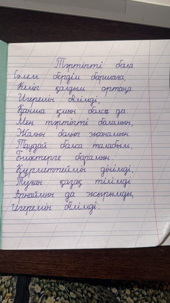 Сейтқасым Әминә Әділханқызы. Көркем жазу Шымкент қаласы №118 “Көкбұлақ” жалпы орта білім беретін мектебі Жетекшісі:Жүнісова Гүлдана Сералықызы FacebookTwitterPinterestWhatsApp Басқа қатысушылар «ҮЗДІК МАҚАЛА» БАЙҚАУЫ Назаров Ербол Сарханович 0 «ҮЗДІК МАҚАЛА» БАЙҚАУЫ Мухамедов Шайхидин Абдураимович 0 «ҮЗДІК МАҚАЛА» БАЙҚАУЫ Закирова Манзура Дауреновна 0 ЕРКІН ТАҚЫРЫПТА «ЭССЕ» ЖАЗУ БАЙҚАУЫ Куанышова Аийда Талғатқызы 0 ЕРКІН ТАҚЫРЫПТА «ЭССЕ» ЖАЗУ БАЙҚАУЫ Мухамедов Шайхидин Абдураимович 0