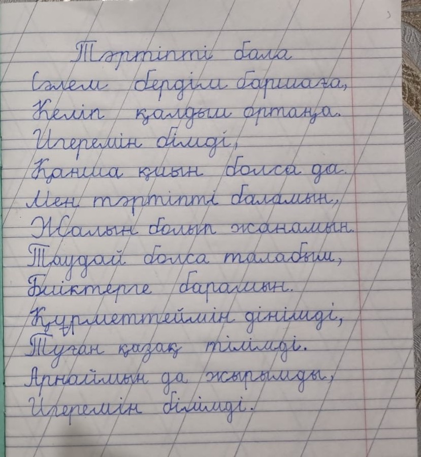 Ерғали Раяна. Көркем жазу №118 Көкбұлақ жалпы білім беретін мектебі Жетекшісі: Дуйсенова Айнагул Оналбаевна FacebookTwitterPinterestWhatsApp Басқа қатысушылар МАД тобы мен 1-сынып оқушылары арасында Республикалық «көркем жазу» байқауы Ислам Айбат Азаматұлы. Көркем жазу 0 МАД тобы мен 1-сынып оқушылары арасында Республикалық «көркем жазу» байқауы Қанат Ханшайым. Көркем жазу 0 МАД тобы мен 1-сынып оқушылары арасында Республикалық «көркем жазу» байқауы Мұрат Ханбибі. Көркем жазу 0 МАД тобы мен 1-сынып оқушылары арасында Республикалық «көркем жазу» байқауы Жанәділқызы Сафия. Көркем жазу 0 МАД тобы мен 1-сынып оқушылары арасында Республикалық «көркем жазу» байқауы Асильбек Бақдәулет. Көркем жазу 0