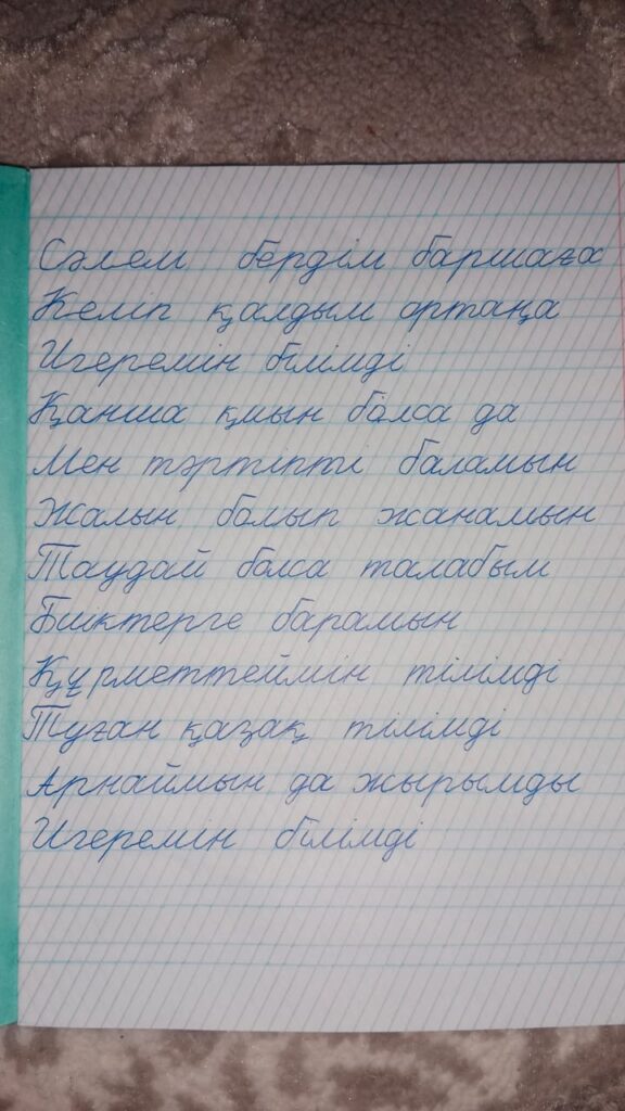 Асильбек Бақдәулет. Көркем жазу Жетекшісі Сұлтанқұл Ғалия FacebookTwitterPinterestWhatsApp Басқа қатысушылар МАД тобы мен 1-сынып оқушылары арасында Республикалық «көркем жазу» байқауы Қанат Ханшайым. Көркем жазу 0 МАД тобы мен 1-сынып оқушылары арасында Республикалық «көркем жазу» байқауы Мұрат Ханбибі. Көркем жазу 0 МАД тобы мен 1-сынып оқушылары арасында Республикалық «көркем жазу» байқауы Жанәділқызы Сафия. Көркем жазу 0 МАД тобы мен 1-сынып оқушылары арасында Республикалық «көркем жазу» байқауы Айтуарова Жасмин Маратовна. Көркем жазу 0 МАД тобы мен 1-сынып оқушылары арасында Республикалық «көркем жазу» байқауы Асылхан Айдын. Көркем жазу 0