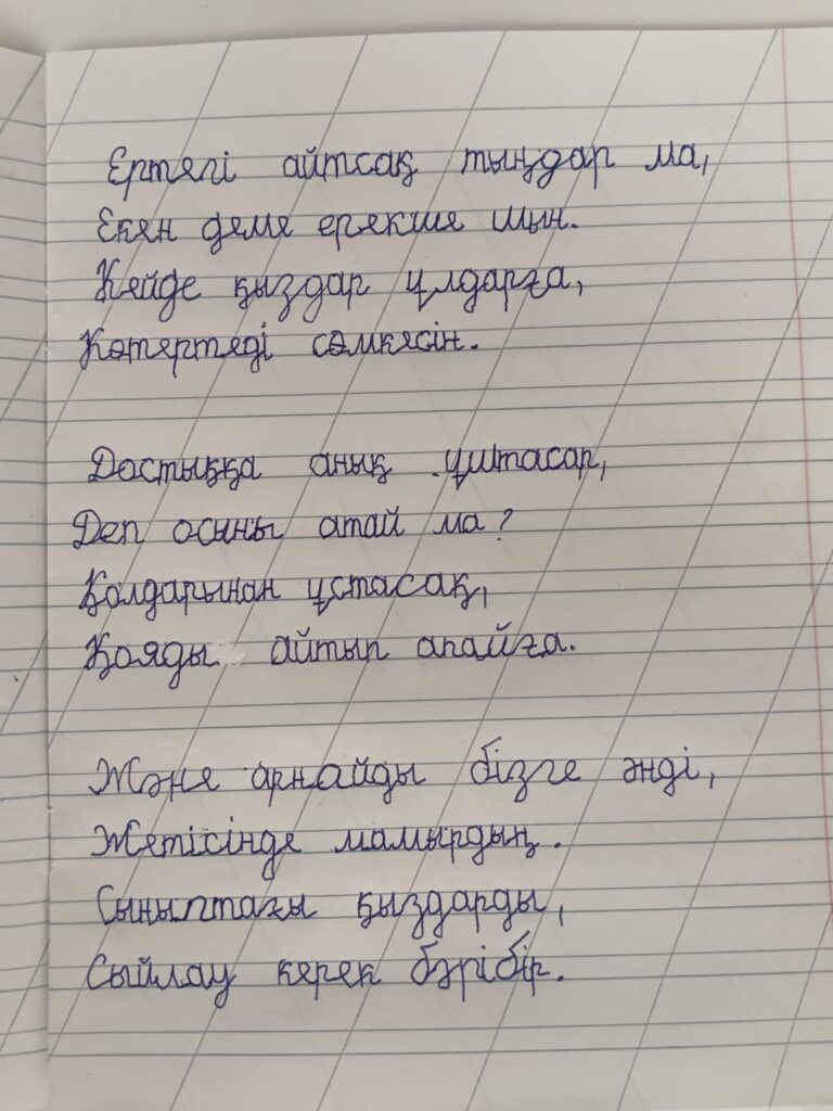 Медетов Арлан. Көркем жазу Астана қаласы әкімдігінің #106 орта мектеп комуналдық мемлекеттік мекеме. Сынып жетекшісі Аманова Алмагуль Жалгасбаевна 1 Т сынып FacebookTwitterPinterestWhatsApp Басқа қатысушылар «ҮЗДІК МАҚАЛА» БАЙҚАУЫ Уатаева Ботагоз Туратовна 0 Бастауыш сынып оқушылары арасында Республикалық «көркем жазу» байқауы Суннет Ясира. Көркем жазу 0 Бастауыш сынып оқушылары арасында Республикалық «көркем жазу» байқауы ТОХТАРБАЙ МУСЛИМ АМАНТАЙҰЛЫ. Көркем жазу 0 Бастауыш сынып оқушылары арасында Республикалық «көркем жазу» байқауы Қуандеков Ерлан. Көркем жазу 0 Бастауыш сынып оқушылары арасында Республикалық «көркем жазу» байқауы Сапарбек Алинұр. Көркем жазу 0