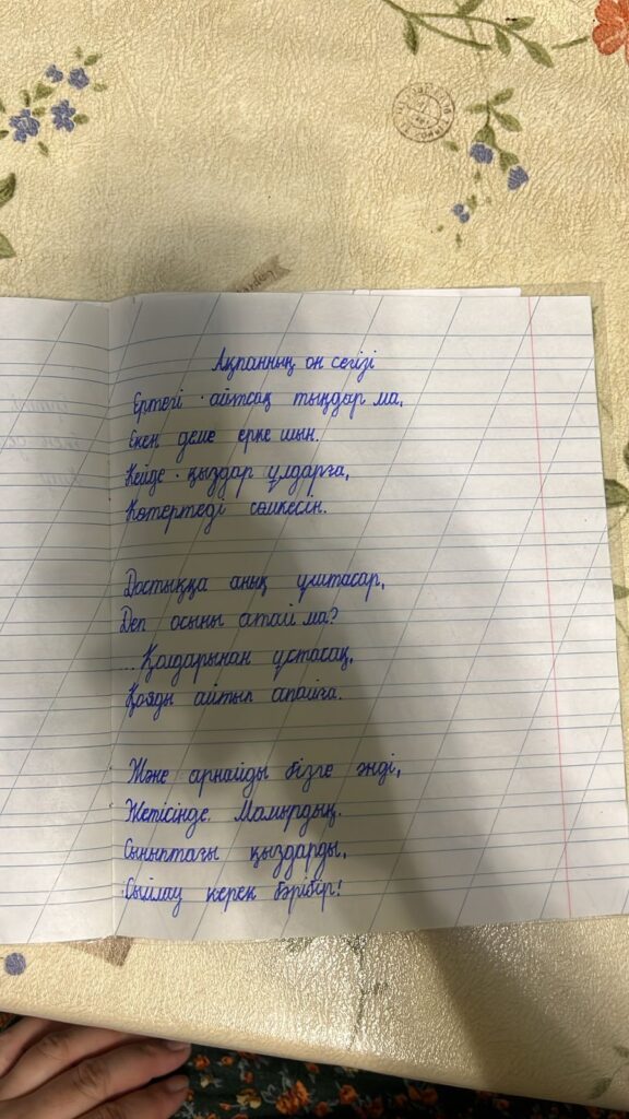 Суннет Ясира. Көркем жазу Сынып жетекшісі Керимжанова Радагул FacebookTwitterPinterestWhatsApp Басқа қатысушылар «ҮЗДІК МАҚАЛА» БАЙҚАУЫ Уатаева Ботагоз Туратовна 0 Бастауыш сынып оқушылары арасында Республикалық «көркем жазу» байқауы ТОХТАРБАЙ МУСЛИМ АМАНТАЙҰЛЫ. Көркем жазу 0 Бастауыш сынып оқушылары арасында Республикалық «көркем жазу» байқауы Қуандеков Ерлан. Көркем жазу 0 Бастауыш сынып оқушылары арасында Республикалық «көркем жазу» байқауы Сапарбек Алинұр. Көркем жазу 0 Бастауыш сынып оқушылары арасында Республикалық «көркем жазу» байқауы Хужатой Айдана. Көркем жазу 0