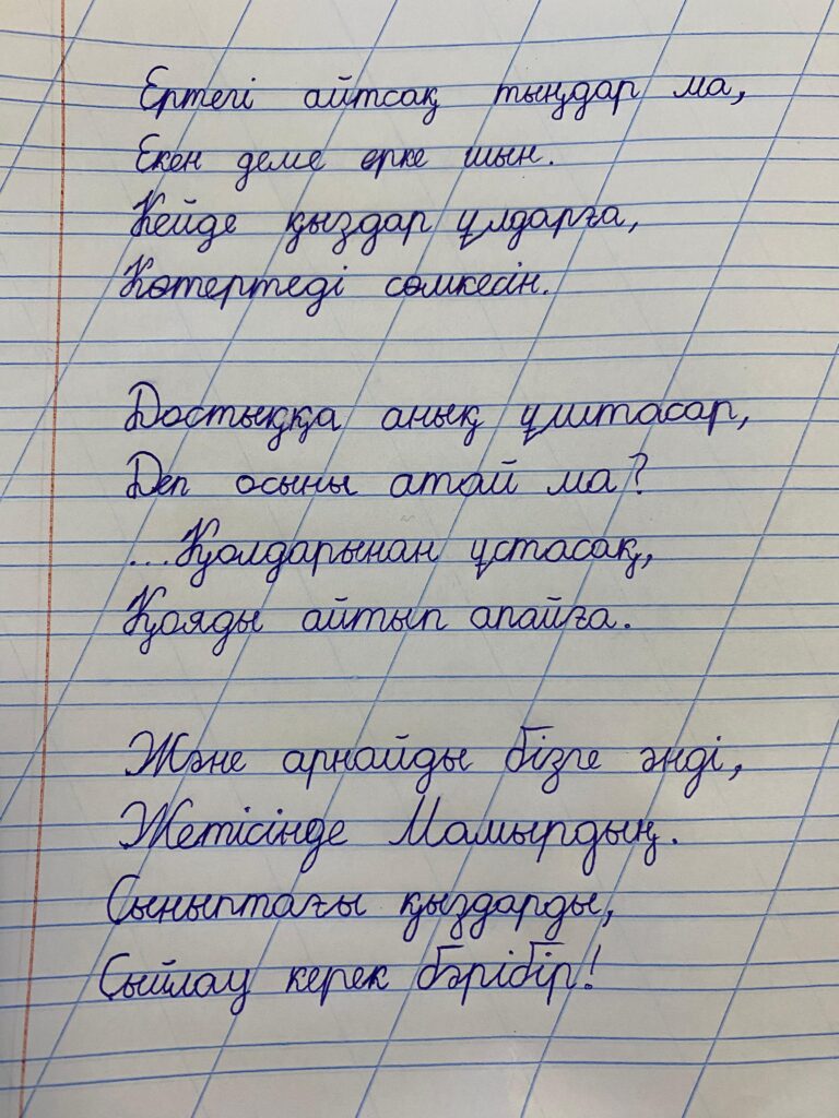 Берік Санжар. Көркем жазу Оқушы:Берік Санжар Мекеме атауы:«СЫР ЖҰЛДЫЗДАРЫ» БАЛАЛАР МЕН ЖАСӨСПІРІМДЕРГЕ АРНАЛҒАН ШЫҒАРМАШЫЛЫҚ ЖӘНЕ ИННОВАЦИЯ АКАДЕМИЯСЫ» ҚОСЫМША БІЛІМ БЕРУ ОРТАЛЫҒЫ 2-ҒИМАРАТ Жетекші: Жұмыртай Ұлболсын Ибрагимқызы FacebookTwitterPinterestWhatsApp Басқа қатысушылар Бастауыш сынып оқушылары арасында Республикалық «көркем жазу» байқауы Құттыбай Айзере Аманжолқызы. Көркем жазу 0 Бастауыш сынып оқушылары арасында Республикалық «көркем жазу» байқауы Молдабай Інжу Қанатқызы. Көркем жазу 0 Бастауыш сынып оқушылары арасында Республикалық «көркем жазу» байқауы Сәрсенбай Ерсұлтан. Көркем жазу 0 «ҮЗДІК МАҚАЛА» БАЙҚАУЫ Уатаева Ботагоз Туратовна 0 Бастауыш сынып оқушылары арасында Республикалық «көркем жазу» байқауы Суннет Ясира. Көркем жазу 0