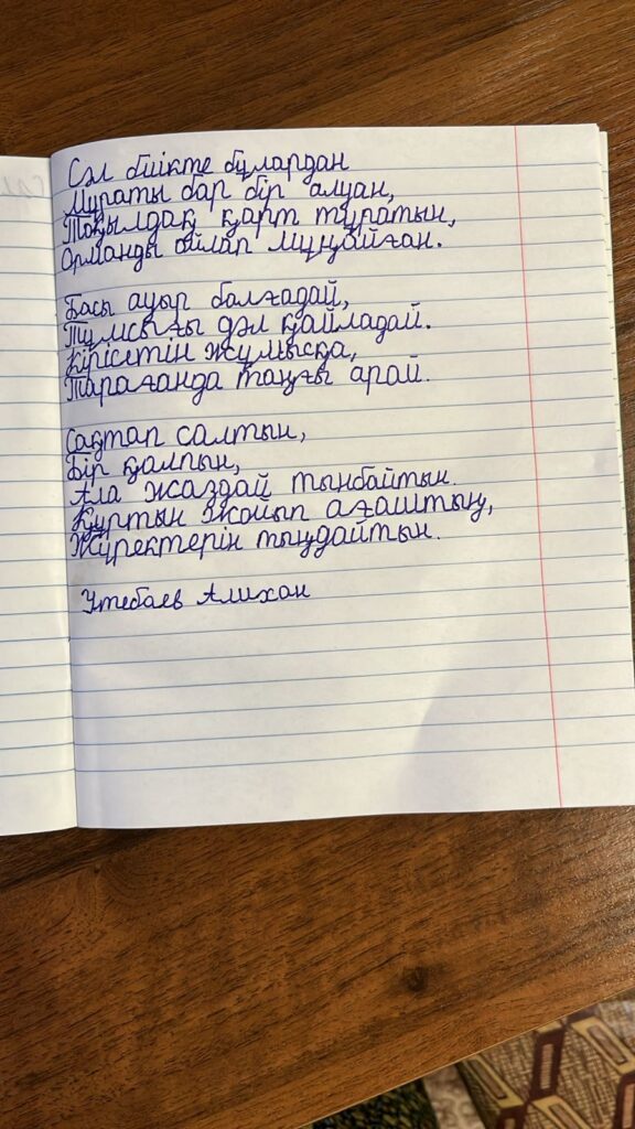 Утебаев Алихан Жамбулович. Көркем жазу Алматы облысы Қарасай ауданы "Ахмет Байтұрсынұлы атындағы орта мектебі" кмм Жетекшісі: Сыдыкова Жанат Комекбаевна FacebookTwitterPinterestWhatsApp Басқа қатысушылар 3-сынып оқушылары арасында Республикалық «көркем жазу» байқауы Өтеген Раяна Төлебекқызы. Көркем жазу 0 3-сынып оқушылары арасында Республикалық «көркем жазу» байқауы Умирбай Айлин Болатқызы. Көркем жазу 0 3-сынып оқушылары арасында Республикалық «көркем жазу» байқауы Китжан Ұлжан Жаңабайқызы. Көркем жазу 0 «ҮЗДІК МАҚАЛА» БАЙҚАУЫ Ермурзаева Айнура Шералиевна 0 3-сынып оқушылары арасында Республикалық «көркем жазу» байқауы Құттыбай Айзере Аманжолқызы. Көркем жазу 0
