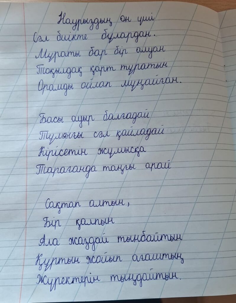 Бекболат Гауһар Сапаралықызы. Көркем жазу N27 Ә Жангелдин ЖББМ КММ Жетекшісі: Бейсенова Дина Асановна FacebookTwitterPinterestWhatsApp Басқа қатысушылар 3-сынып оқушылары арасында Республикалық «көркем жазу» байқауы Мусурманова Дияра Анваровна. Көркем жазу 0 3-сынып оқушылары арасында Республикалық «көркем жазу» байқауы Есенбек Арман Бекболұлы. Көркем жазу 0 3-сынып оқушылары арасында Республикалық «көркем жазу» байқауы Ережеп Нуриман Сапарбайұлы. Көркем жазу 0 3-сынып оқушылары арасында Республикалық «көркем жазу» байқауы Қуантай Төреғали Серікұлы. Көркем жазу 0 3-сынып оқушылары арасында Республикалық «көркем жазу» байқауы Саттар Қазына Нұрболсынқызы. Көркем жазу 0