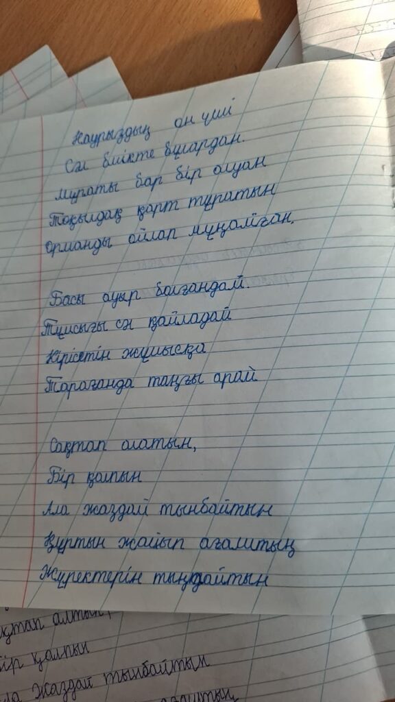 Ережеп Нуриман Сапарбайұлы. Көркем жазу N27 Ә Жангелдин ЖББМ КММ Жетекшісі: Бейсенова Дина Асановна FacebookTwitterPinterestWhatsApp Басқа қатысушылар 3-сынып оқушылары арасында Республикалық «көркем жазу» байқауы Бекболат Гауһар Сапаралықызы. Көркем жазу 0 3-сынып оқушылары арасында Республикалық «көркем жазу» байқауы Мусурманова Дияра Анваровна. Көркем жазу 0 3-сынып оқушылары арасында Республикалық «көркем жазу» байқауы Есенбек Арман Бекболұлы. Көркем жазу 0 3-сынып оқушылары арасында Республикалық «көркем жазу» байқауы Қуантай Төреғали Серікұлы. Көркем жазу 0 3-сынып оқушылары арасында Республикалық «көркем жазу» байқауы Саттар Қазына Нұрболсынқызы. Көркем жазу 0