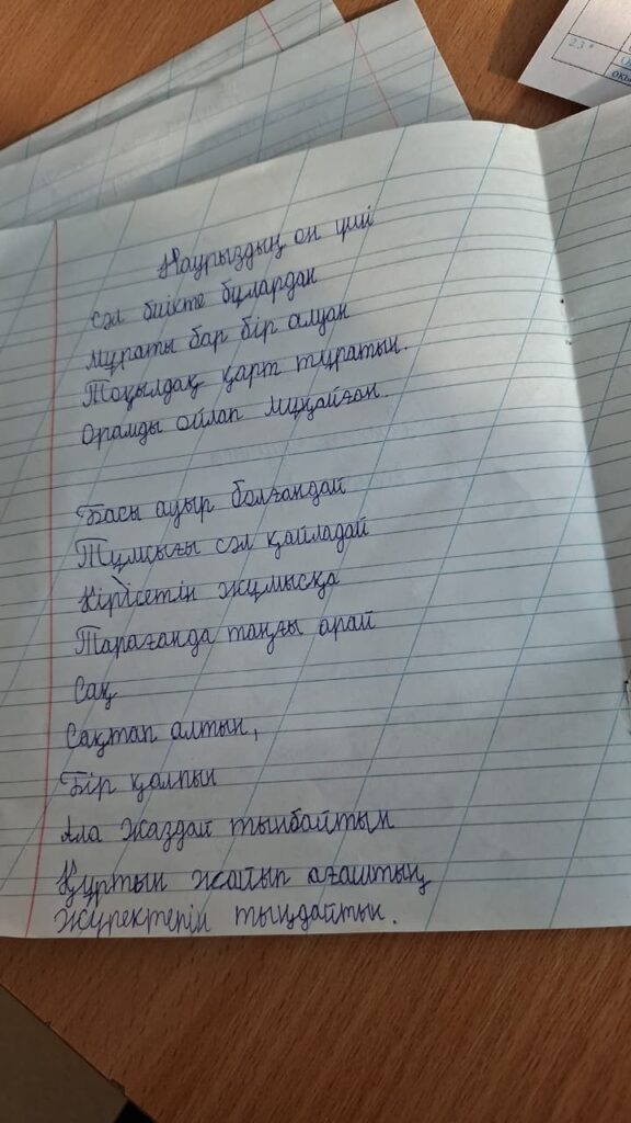 Есенбек Арман Бекболұлы. Көркем жазу N27 Ә Жангелдин ЖББМ КММ Жетекшісі: Бейсенова Дина Асановна FacebookTwitterPinterestWhatsApp Басқа қатысушылар 3-сынып оқушылары арасында Республикалық «көркем жазу» байқауы Бекболат Гауһар Сапаралықызы. Көркем жазу 0 3-сынып оқушылары арасында Республикалық «көркем жазу» байқауы Мусурманова Дияра Анваровна. Көркем жазу 0 3-сынып оқушылары арасында Республикалық «көркем жазу» байқауы Ережеп Нуриман Сапарбайұлы. Көркем жазу 0 3-сынып оқушылары арасында Республикалық «көркем жазу» байқауы Қуантай Төреғали Серікұлы. Көркем жазу 0 3-сынып оқушылары арасында Республикалық «көркем жазу» байқауы Саттар Қазына Нұрболсынқызы. Көркем жазу 0