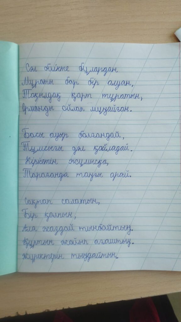 Оразали Дархан Муратұлы. Көркем жазу Әліби Жангелдин атындағы номері 27 жалпы білім беретін мектеп FacebookTwitterPinterestWhatsApp Басқа қатысушылар 3-сынып оқушылары арасында Республикалық «көркем жазу» байқауы Бекболат Гауһар Сапаралықызы. Көркем жазу 0 3-сынып оқушылары арасында Республикалық «көркем жазу» байқауы Мусурманова Дияра Анваровна. Көркем жазу 0 3-сынып оқушылары арасында Республикалық «көркем жазу» байқауы Есенбек Арман Бекболұлы. Көркем жазу 0 3-сынып оқушылары арасында Республикалық «көркем жазу» байқауы Ережеп Нуриман Сапарбайұлы. Көркем жазу 0 3-сынып оқушылары арасында Республикалық «көркем жазу» байқауы Қуантай Төреғали Серікұлы. Көркем жазу 0