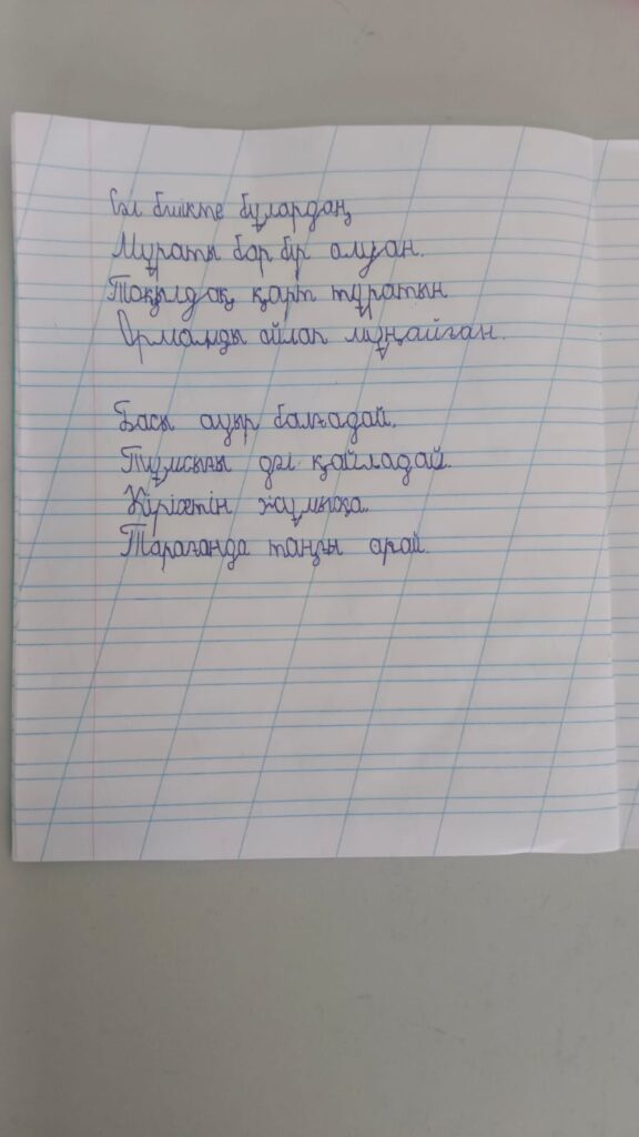 Абай Жансая. Көркем жазу Шортанбай Қанайұлы атындағы №2 жалпы білім беретін мектептің 0 Б мектепалды даярлық сыныбы Жетекшісі : Айдарбекова Улжан Алтынбековна FacebookTwitterPinterestWhatsApp Басқа қатысушылар 4-сынып оқушылары арасында Республикалық «көркем жазу» байқауы Торлан Әлия. Көркем жазу 0 4-сынып оқушылары арасында Республикалық «көркем жазу» байқауы Балтабай Аянат. Көркем жазу 0 4-сынып оқушылары арасында Республикалық «көркем жазу» байқауы Сәрсенбай Еркежан. Көркем жазу 0 4-сынып оқушылары арасында Республикалық «көркем жазу» байқауы Бектөре Айша. Көркем жазу 0 4-сынып оқушылары арасында Республикалық «көркем жазу» байқауы Юсупова Айша. Көркем жазу 0