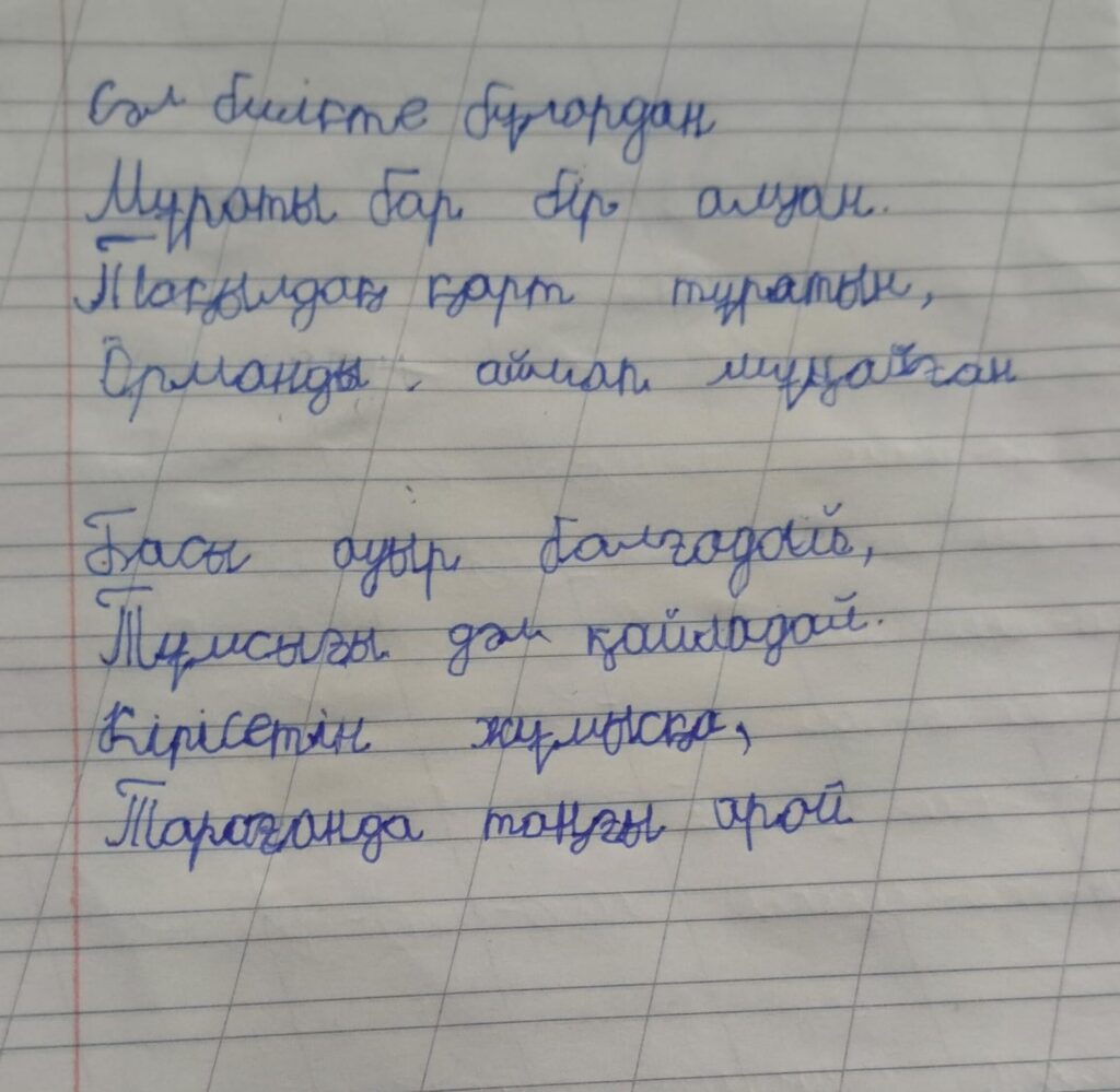 Балтабай Аянат. Көркем жазу Түркістан облысы Кентау қаласы Шортанбай Қанайұлы атындағы ✓2 жалпы білім беретін мектеп Жетекші: Рахметова Мөлдір FacebookTwitterPinterestWhatsApp Басқа қатысушылар 4-сынып оқушылары арасында Республикалық «көркем жазу» байқауы Торлан Әлия. Көркем жазу 0 4-сынып оқушылары арасында Республикалық «көркем жазу» байқауы Сәрсенбай Еркежан. Көркем жазу 0 4-сынып оқушылары арасында Республикалық «көркем жазу» байқауы Бектөре Айша. Көркем жазу 0 4-сынып оқушылары арасында Республикалық «көркем жазу» байқауы Юсупова Айша. Көркем жазу 0 4-сынып оқушылары арасында Республикалық «көркем жазу» байқауы Құрбанғали Асылжан. Көркем жазу 0