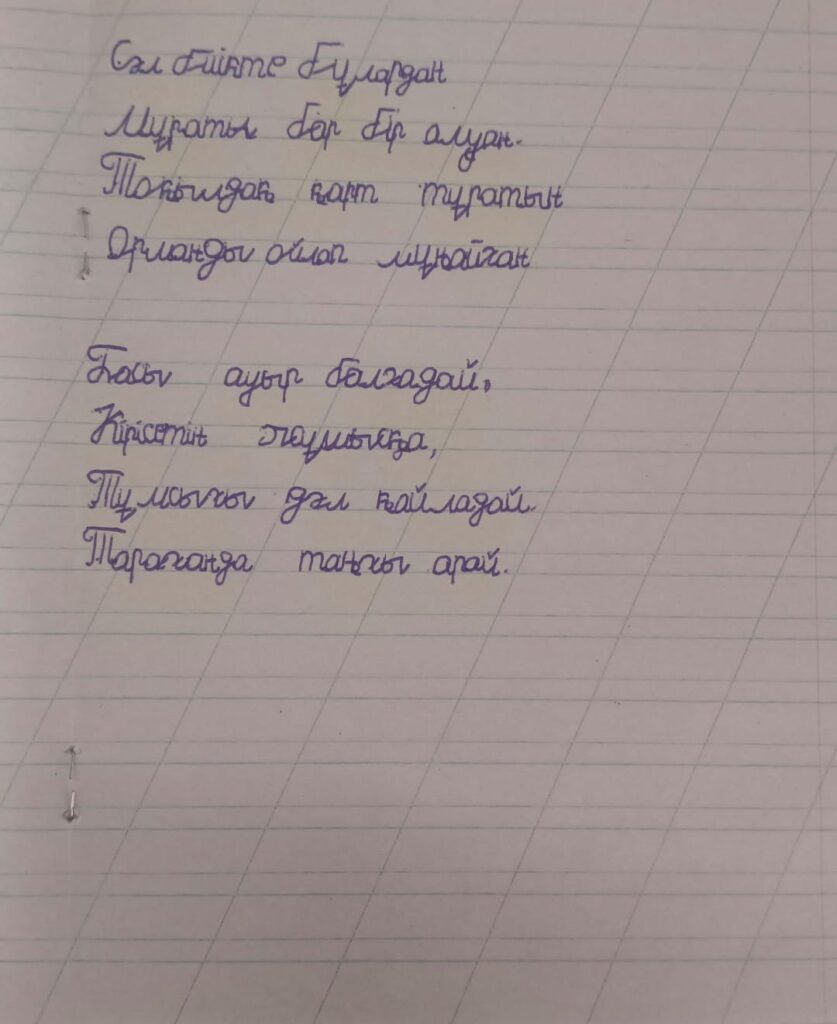 Елнұрқыз Көзайым. Көркем жазу Шортанбай Қанайұлы атындағы №2 жалпы білім беретін мектептің 0 Б мектепалды даярлық сыныбы Жетекшісі : Айдарбекова Улжан Алтынбековна FacebookTwitterPinterestWhatsApp Басқа қатысушылар 4-сынып оқушылары арасында Республикалық «көркем жазу» байқауы Торлан Әлия. Көркем жазу 0 4-сынып оқушылары арасында Республикалық «көркем жазу» байқауы Балтабай Аянат. Көркем жазу 0 4-сынып оқушылары арасында Республикалық «көркем жазу» байқауы Сәрсенбай Еркежан. Көркем жазу 0 4-сынып оқушылары арасында Республикалық «көркем жазу» байқауы Бектөре Айша. Көркем жазу 0 4-сынып оқушылары арасында Республикалық «көркем жазу» байқауы Юсупова Айша. Көркем жазу 0