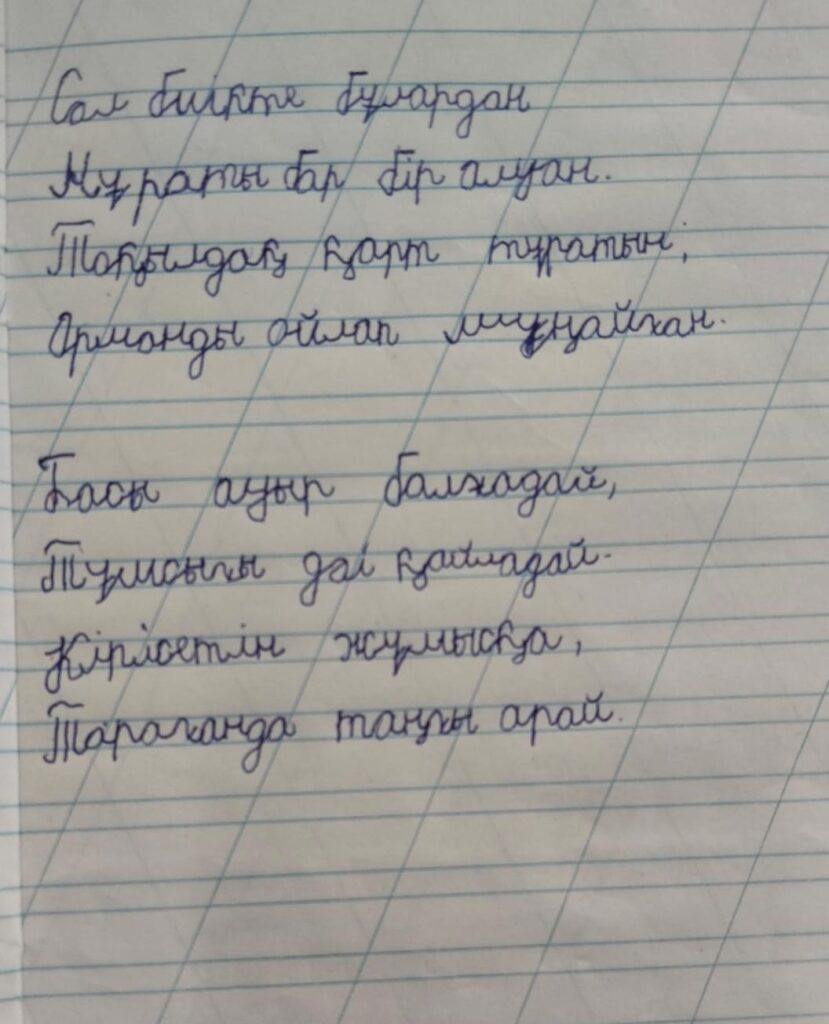 Маратова Айзере. Көркем жазу Түркістан облысы Кентау қаласы Шортанбай Қанайұлы атындағы ✓2 жалпы білім беретін мектеп Жетекші: Рахметова Мөлдір FacebookTwitterPinterestWhatsApp Басқа қатысушылар 4-сынып оқушылары арасында Республикалық «көркем жазу» байқауы Торлан Әлия. Көркем жазу 0 4-сынып оқушылары арасында Республикалық «көркем жазу» байқауы Балтабай Аянат. Көркем жазу 0 4-сынып оқушылары арасында Республикалық «көркем жазу» байқауы Сәрсенбай Еркежан. Көркем жазу 0 4-сынып оқушылары арасында Республикалық «көркем жазу» байқауы Бектөре Айша. Көркем жазу 0 4-сынып оқушылары арасында Республикалық «көркем жазу» байқауы Юсупова Айша. Көркем жазу 0